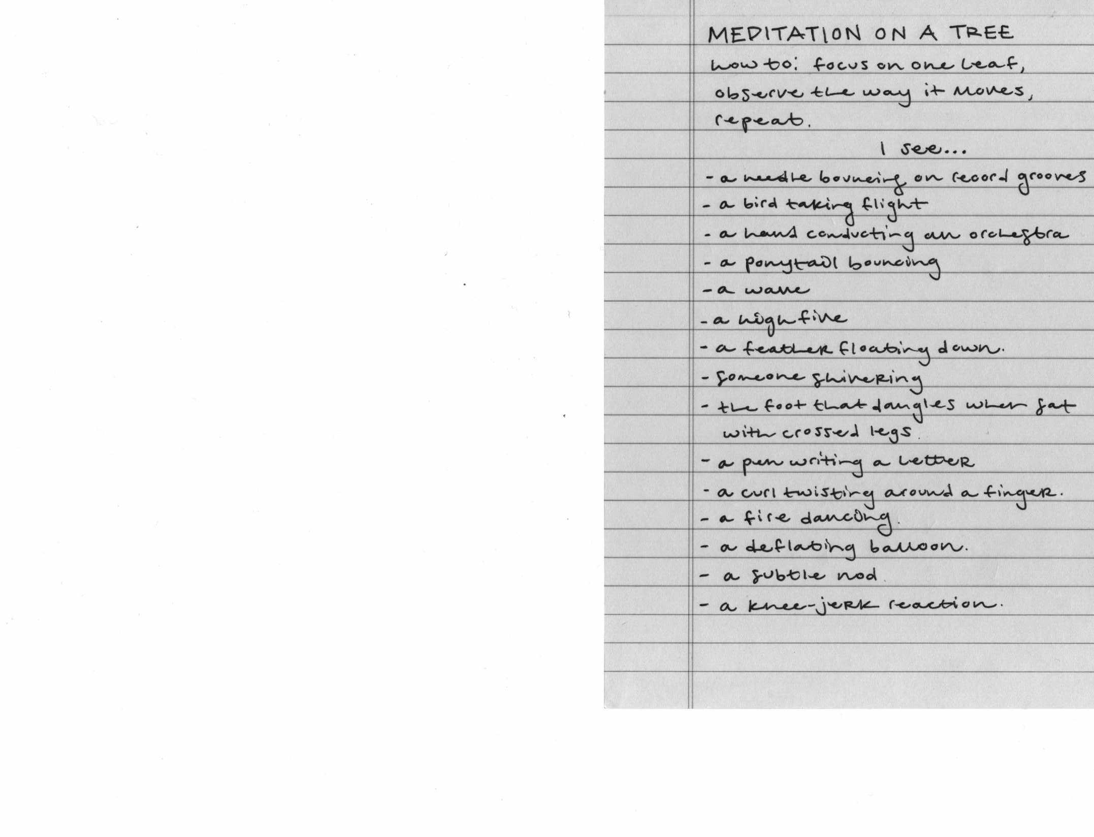 to quiet for even just one full minute is incredibly challenging. The best I can do is focus on my breath. I listen to myself inhale and exhale and I think the words “inhale, exhale, inhale, exhale.” The challenge lies in extinguishing the words. I can’t listen to my breath without thinking about the fact that I’m breathing. Or if I shift focus to listen to my surroundings, I can’t help but label what I’m hearing: